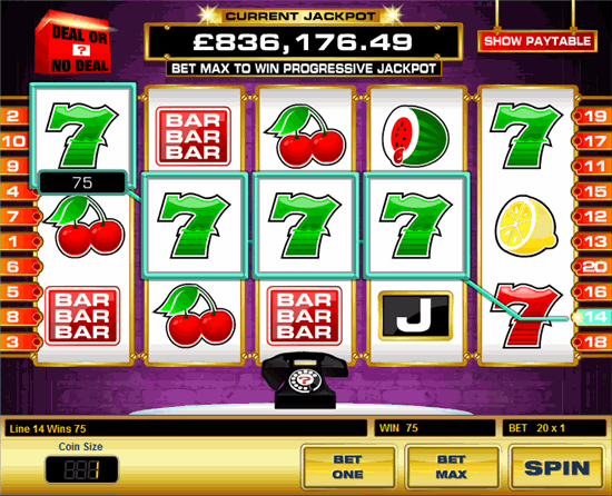 The game itself is basic in nature but great fun. Before playing you will need to make a stake of 5p per line, 10p per line, or 20p per line, and the amount you bet will determine the progressive jackpot upon which you play for. The great fun of Deal or no Deal is the quality of the bonus rounds, which we found to be both fun and great with chances to win good cash prizes.